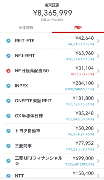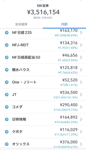 クミアイ化学を売り、積水ハウスと日経高配当50をふやしました。こちらもリートを増やしてますね。